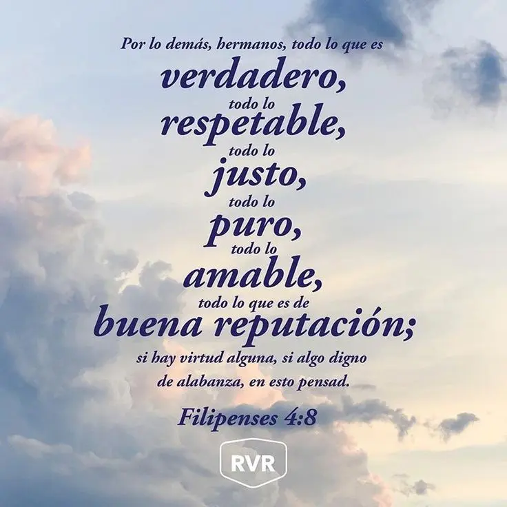 El capítulo 4 de Filipenses es una exhortación de Pablo a la iglesia en Filipos para que vivan en armonía y paz. Él les insta a que se regocijen siempre en el Señor y a que sean amables y comprensivos entre sí. En el versículo 8, Pablo presenta una lista de cualidades y características que deben guiar el pensamiento de los creyentes. Estas incluyen cosas verdaderas, nobles, justas, puras, amables, dignas de admiración y todo lo que sea excelente o merezca alabanza. El objetivo de esta lista es ayudar a los creyentes a enfocarse en lo que es positivo y edificante, dejando de lado pensamientos negativos y destructivos.